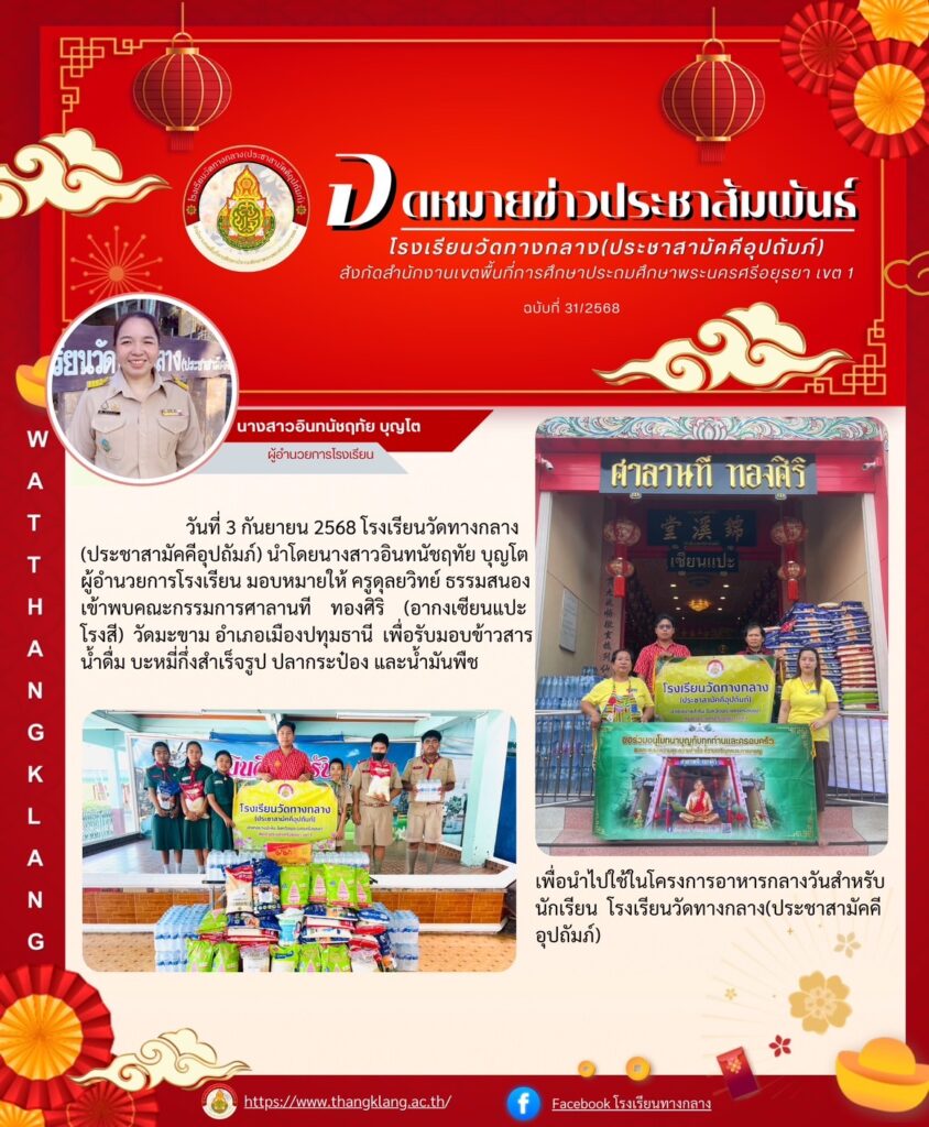วันที่ 3 กันยายน 2568 โรงเรียนวัดทางกลาง (ประชาสามัคคีอุปถัมภ์) นำโดยนางสาวอินทนัชฤทัย บุญโต