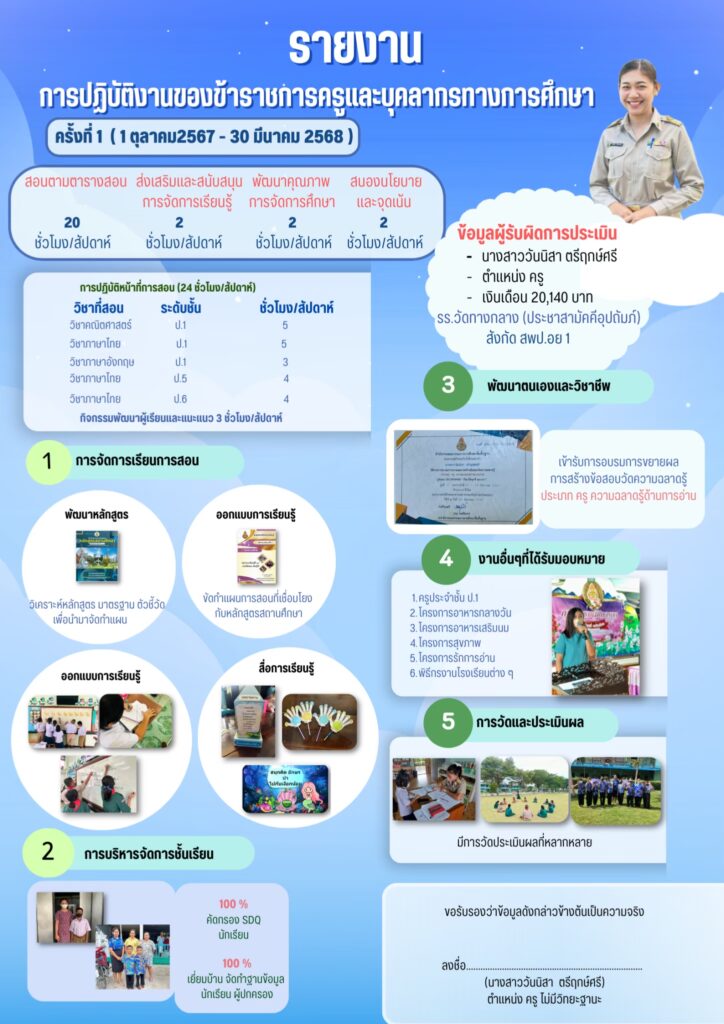 รายงานผลการปฏิบัติงานของข้าราชการครู ครั้งที่ 1 (1 ต.ค. 67 – 31 มี.ค. 68